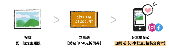 於活動期間投稿照片,即可獲得點點印「$50 折價券」一張。