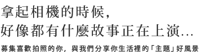 參賽作品規定:長、寬皆需大於 800 px,參賽作品不限制地點、時間、形式,任何與生活片段的攝影照片皆可參加。